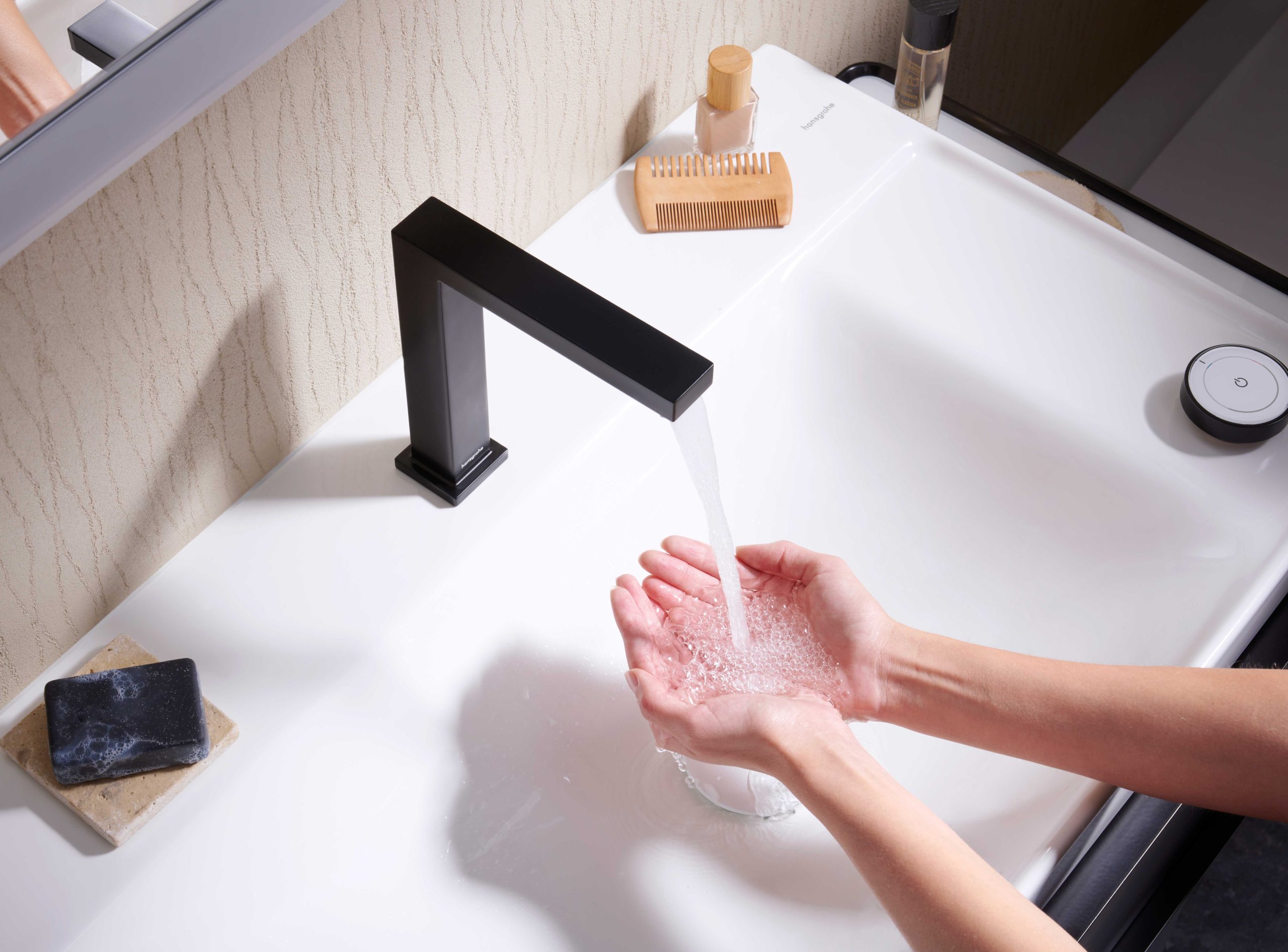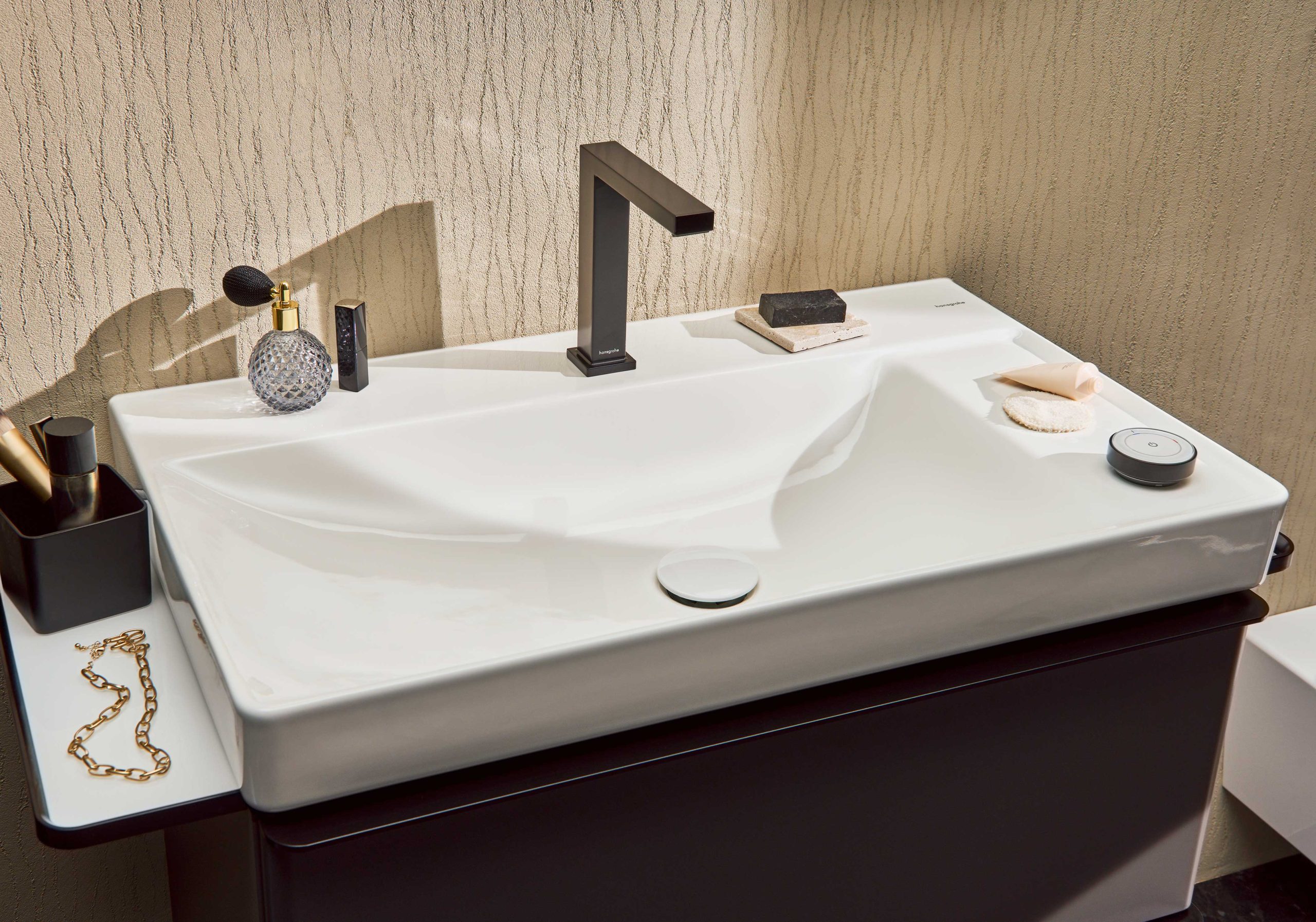 Mezclador de lavabo de 2 orificios 150 CoolStart EcoSmart+ con vaciador. Superficie negro mate.