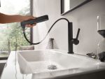 Mezclador monomando de lavabo 230 con ducha extraíble, 2jet y vaciador push-open. Superficie negro mate